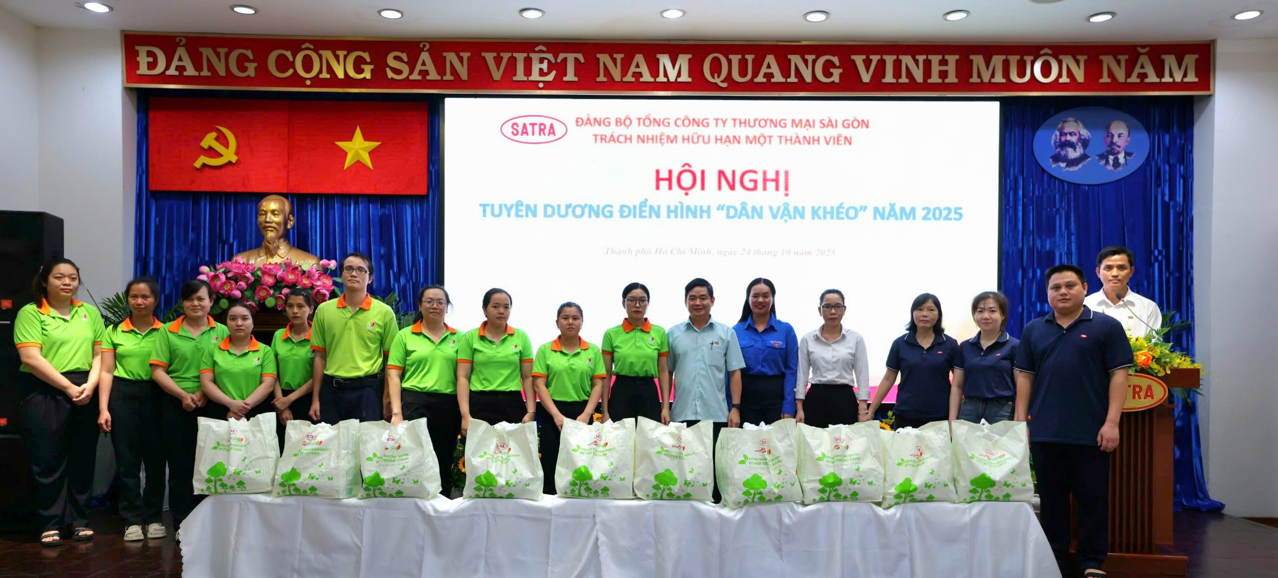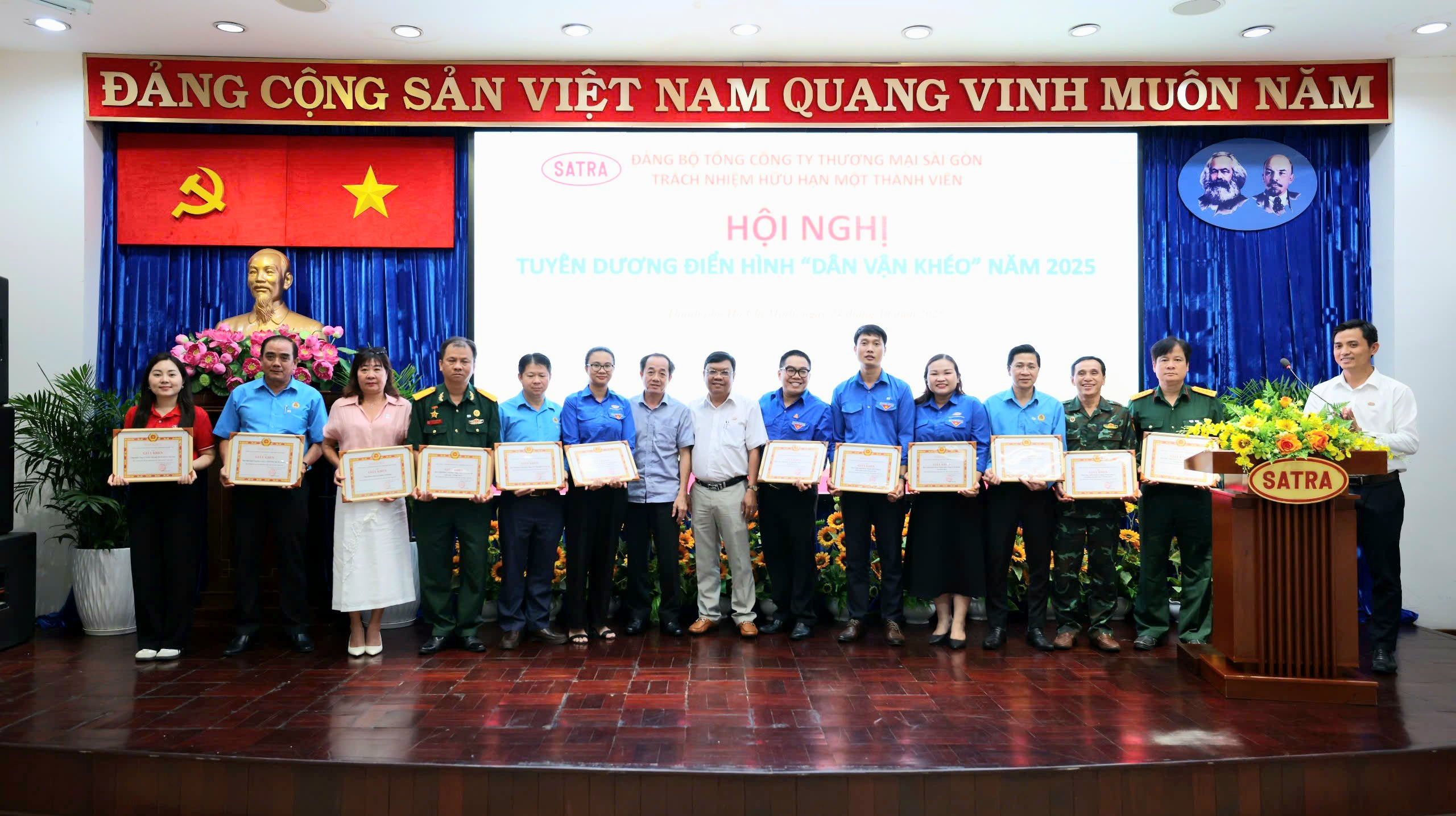 Tại Hội nghị, Đảng ủy SATRA đã trao giấy khen của Đảng ủy Ủy ban nhân dân Thành phố cho 02 tập thể và 04 cá nhân “Dân vận khéo” tiêu biểu, đồng thời tuyên dương 43 tập thể và 63 cá nhân điển hình “Dân vận khéo” cấp Tổng Công ty năm 2025.