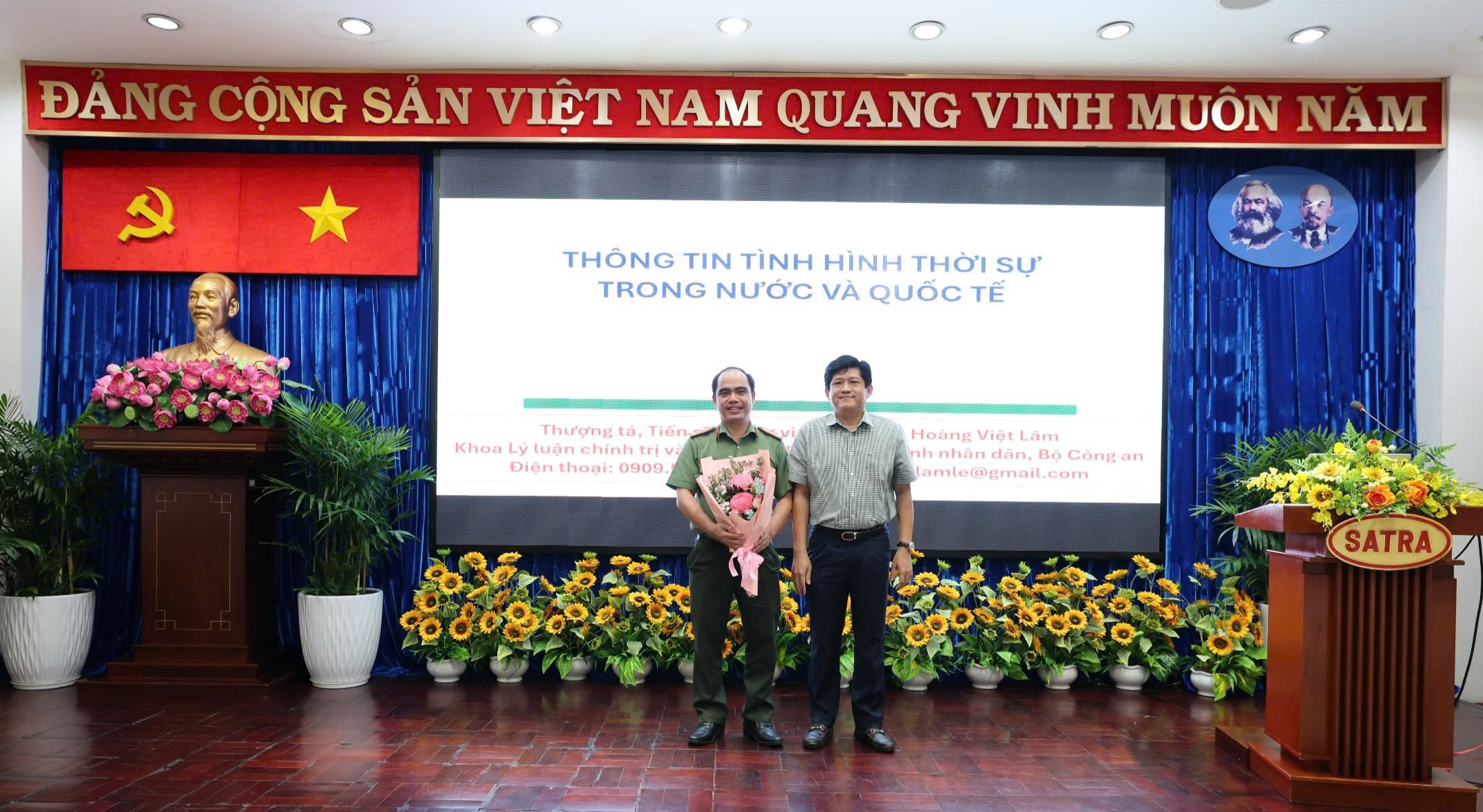 Trong chương trình, các đại biểu đã được nghe Thượng tá, Tiến sĩ Lê Hoàng Việt Lâm – Giảng viên chính Trường Đại học An ninh nhân dân báo cáo chuyên đề về tình hình thời sự trong nước và quốc tế.