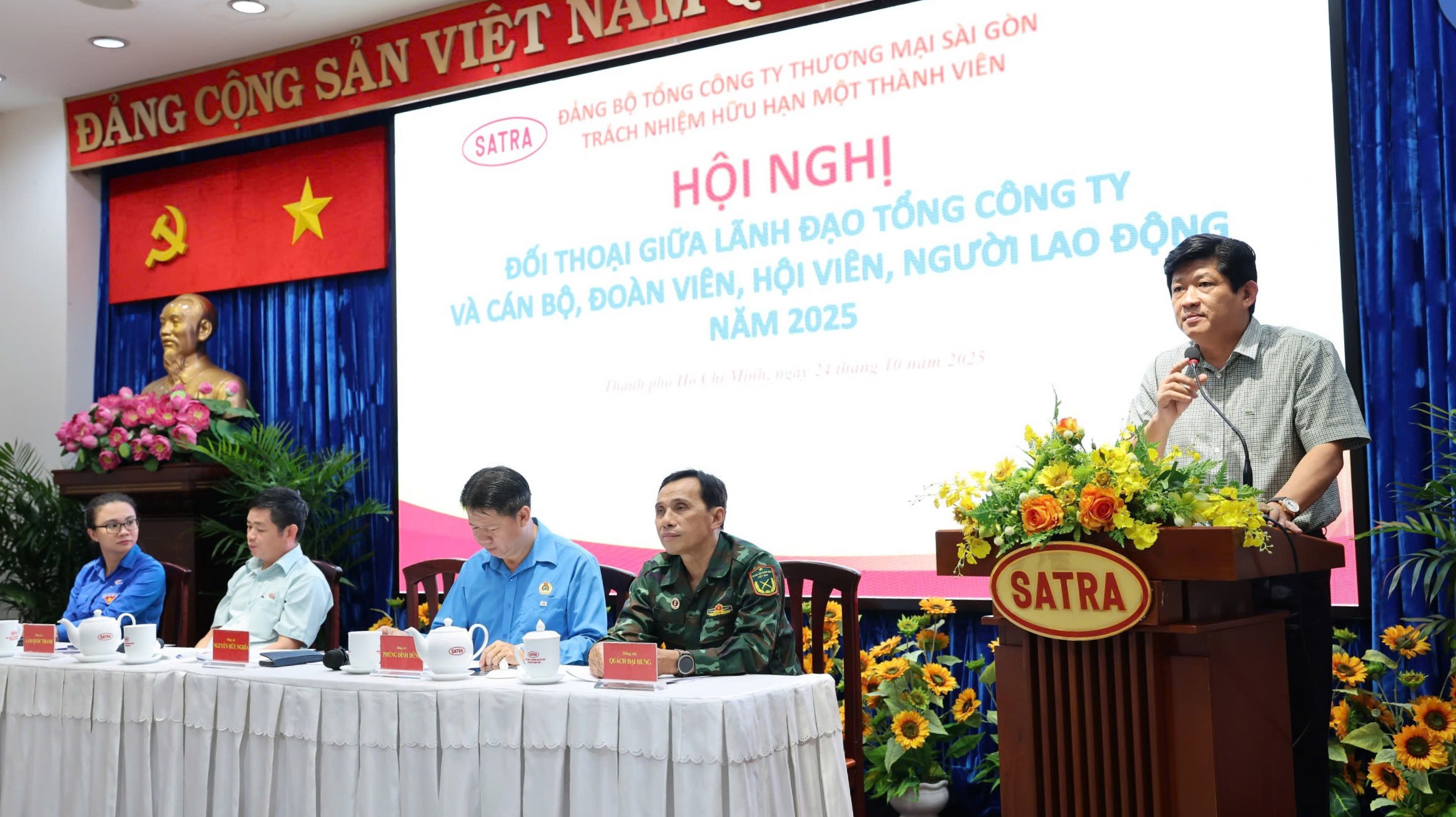 Ngày 24/10, Đảng ủy Tổng Công ty Thương mại Sài Gòn – TNHH Một thành viên (SATRA) đã tổ chức Hội nghị đối thoại định kỳ giữa lãnh đạo Tổng Công ty với cán bộ, đoàn viên, hội viên, đồng thời tuyên dương các điển hình “Dân vận khéo” năm 2025.