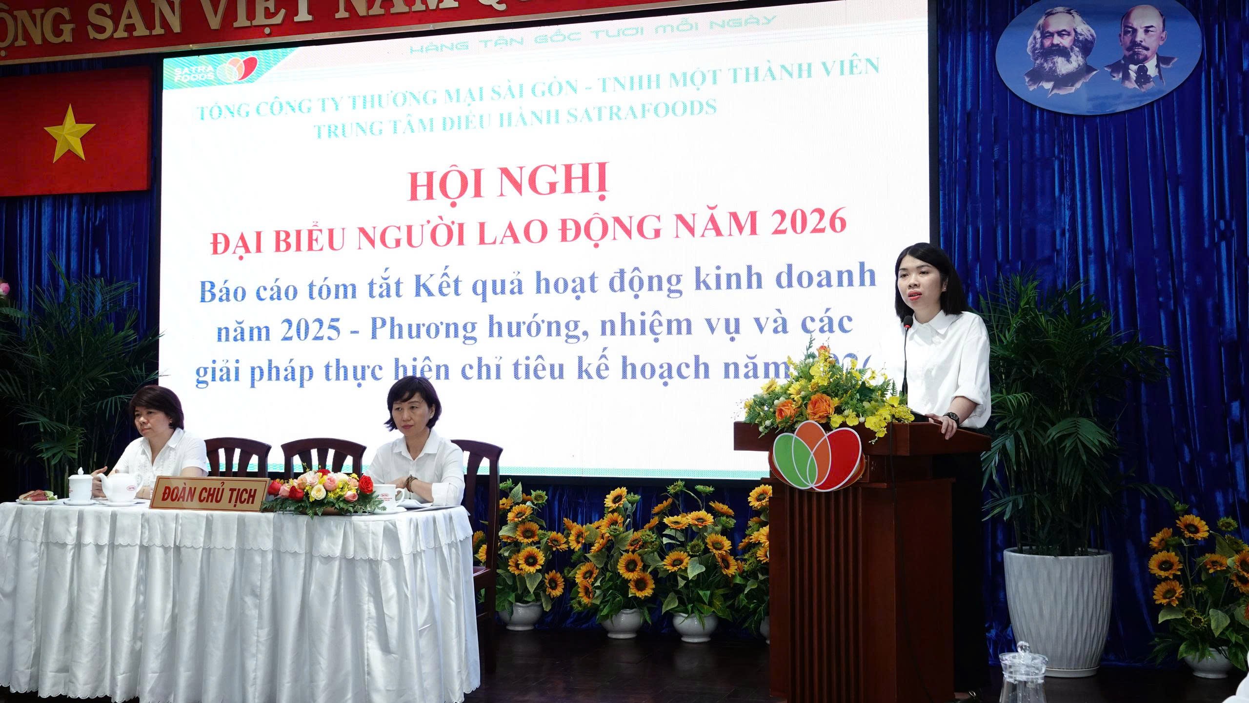 Năm 2025, trong bối cảnh thị trường bán lẻ cạnh tranh gay gắt, SATRAFOODS đã phát huy tốt quy chế dân chủ cơ sở, tạo sự đồng thuận cao trong tập thể hơn 1.000 nhân viên. Tại hội nghị, các đại biểu đã thẳng thắn đánh giá kết quả sản xuất kinh doanh, đồng thời thống nhất 100% thông qua Nghị quyết năm 2026 với những mục tiêu thách thức hơn.