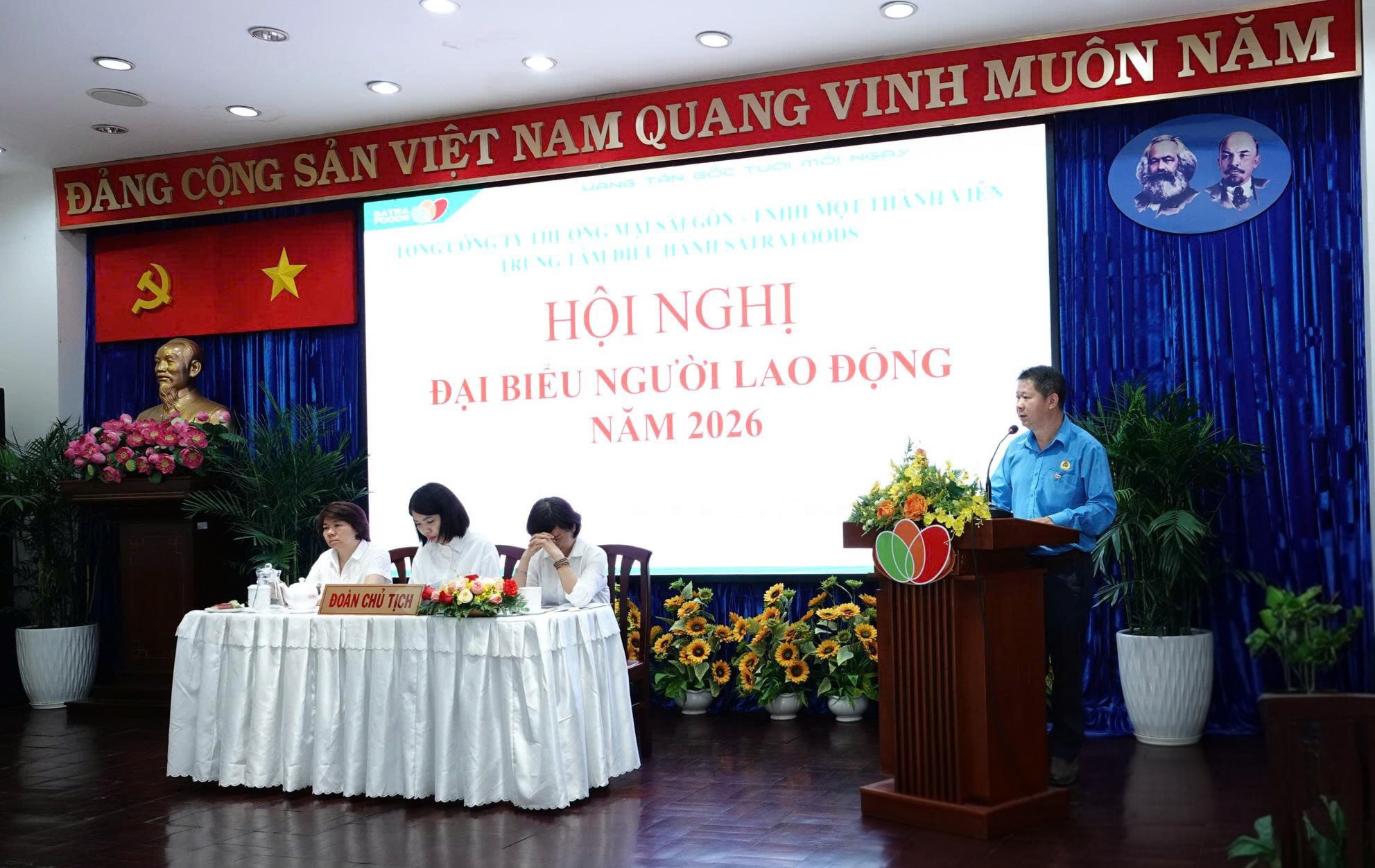Ngày 27/3, Trung tâm Điều hành SATRAFOODS đã tổ chức thành công Hội nghị Người lao động năm 2026. Tham dự hội nghị có đồng chí Phùng Đình Dũng – Chủ tịch Công đoàn SATRA; đồng chí Vũ Dương Quân – Giám đốc Phòng Nghiên cứu Thị trường và Quản lý Hệ thống bán lẻ SATRA; đồng chí Vương Thủy Tiên – Giám đốc Trung tâm và 176 đại biểu đại diện cho hơn 1.185 người lao động toàn hệ thống.