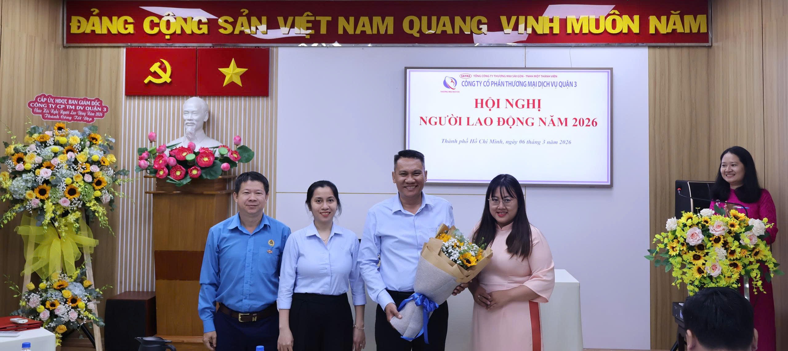 Ngày 06/3, Công ty Cổ phần Thương mại Dịch vụ Quận 3 (SETRA3) – đơn vị thành viên do Tổng Công ty Thương mại Sài Gòn (SATRA) nắm giữ 51% vốn điều lệ – đã tổ chức thành công Hội nghị Người lao động năm 2026.