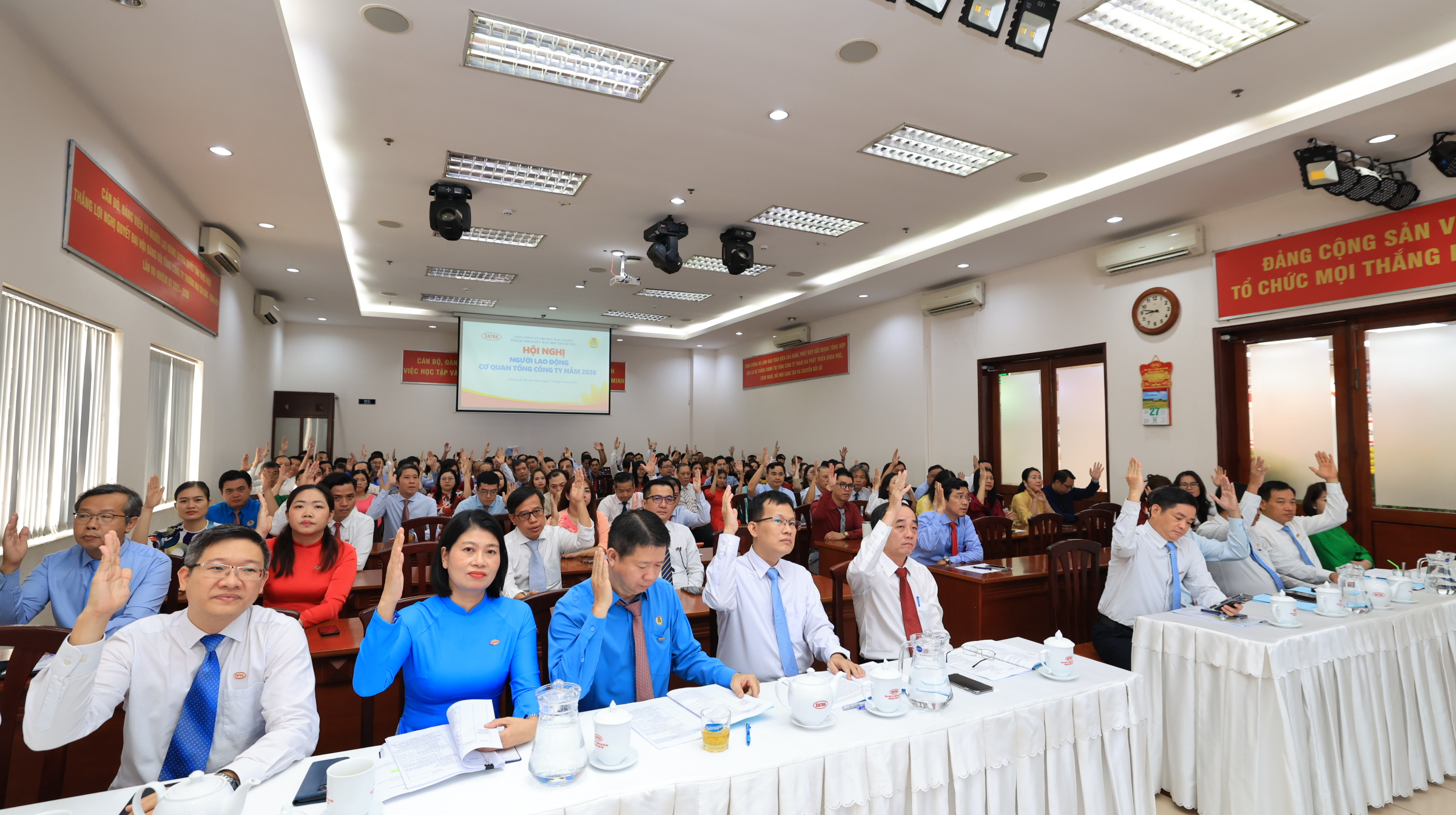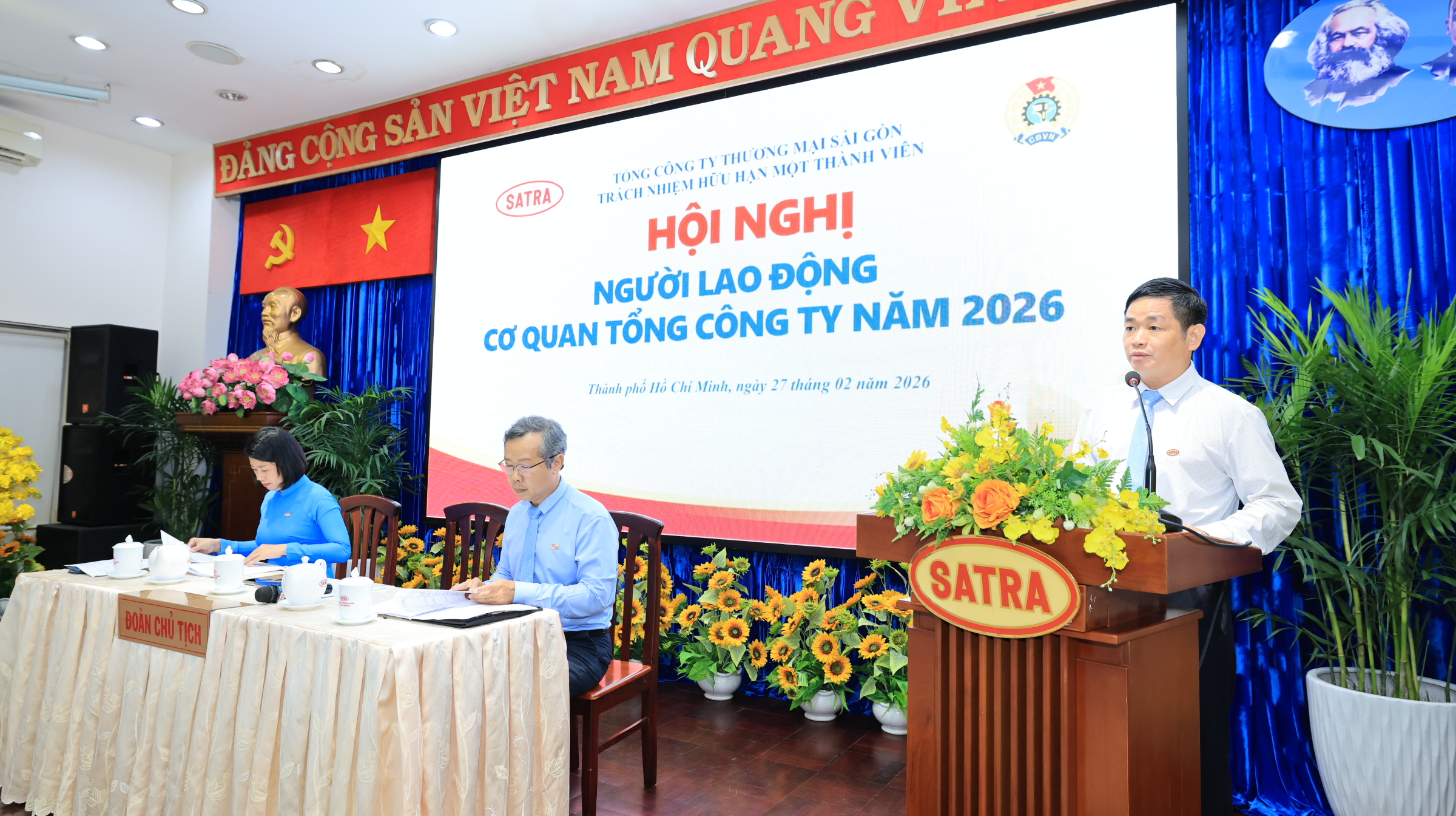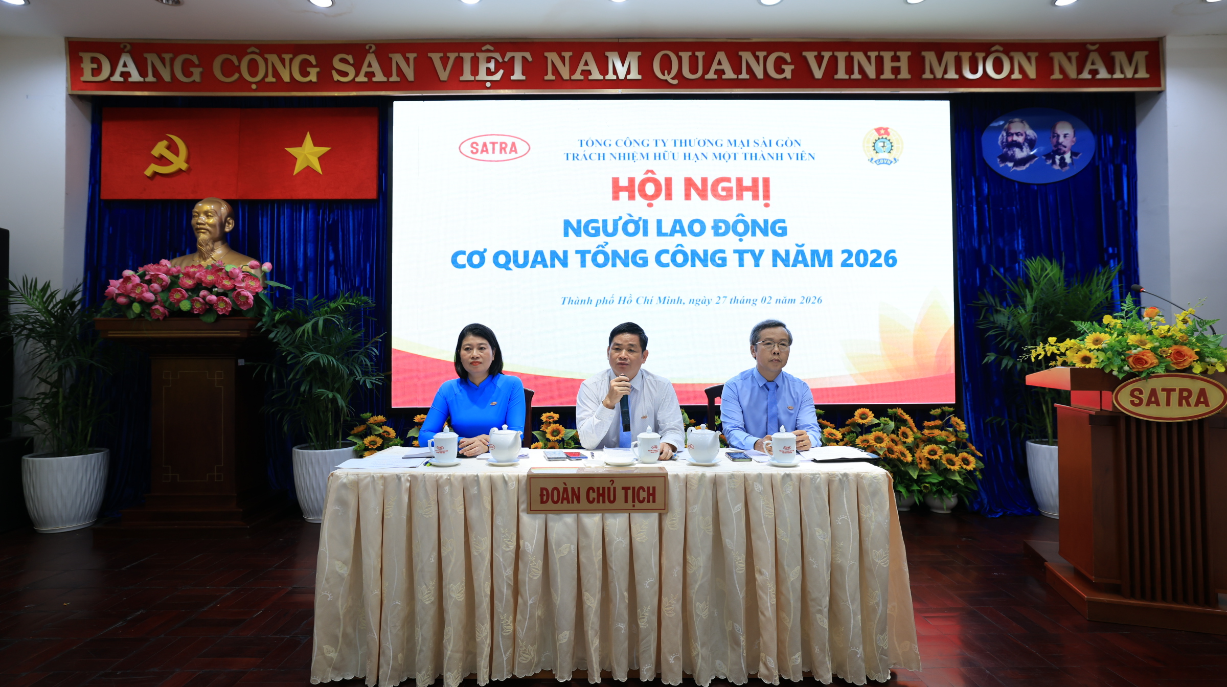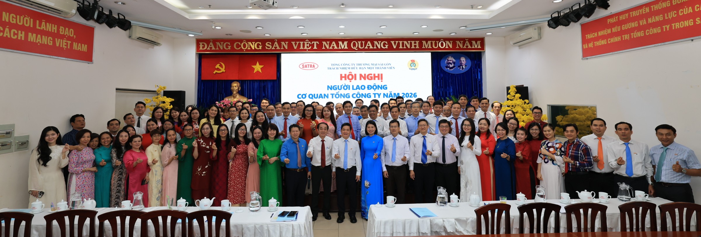 Sáng 27/02, tại hội trường cao ốc 275B Phạm Ngũ Lão, Phường Bến Thành, Tổng Công ty Thương mại Sài Gòn – TNHH Một thành viên (SATRA) đã tổ chức Hội nghị Người lao động Cơ quan Tổng Công ty năm 2026.
